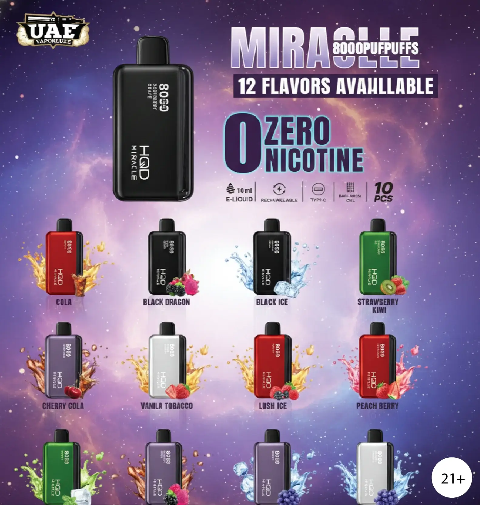 Yes, HQD Miracle 8K puffs Zero Nicotine disposable vape is available for a pure flavor experience in Dubai at UAEVaporLuxe.