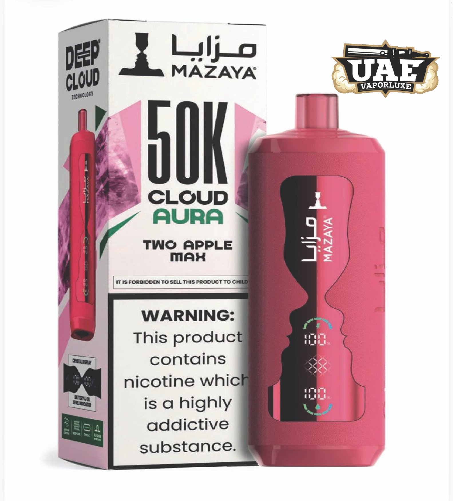 Package includes :1x Mazaya Cloud AURA 50000 Puffs 6mg Disposable Vape