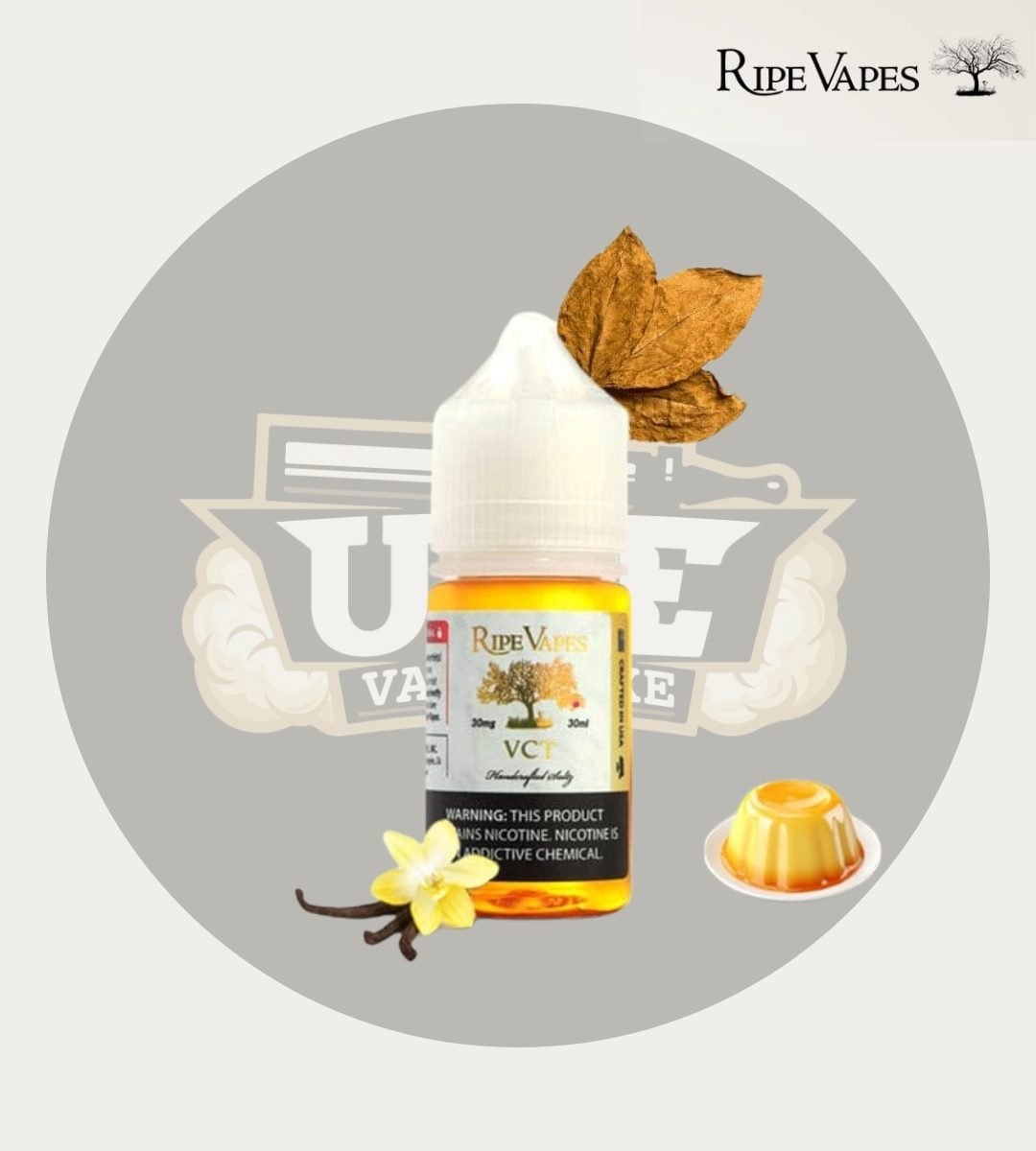 Ripe Vapes VCT 30ml SaltNic e-liquid delivers a decadent trio of smooth tobacco, creamy vanilla custard, and caramel notes for sophisticated UAE vapers. Inhale offers nutty tobacco richness intensified across the palate, followed by warm vanilla, with exhale bringing sweet custard creaminess. This 50/50 VG/PG salt formulation provides smooth throat hit for low-wattage pod systems, stocked at uaevaporluxe.com.