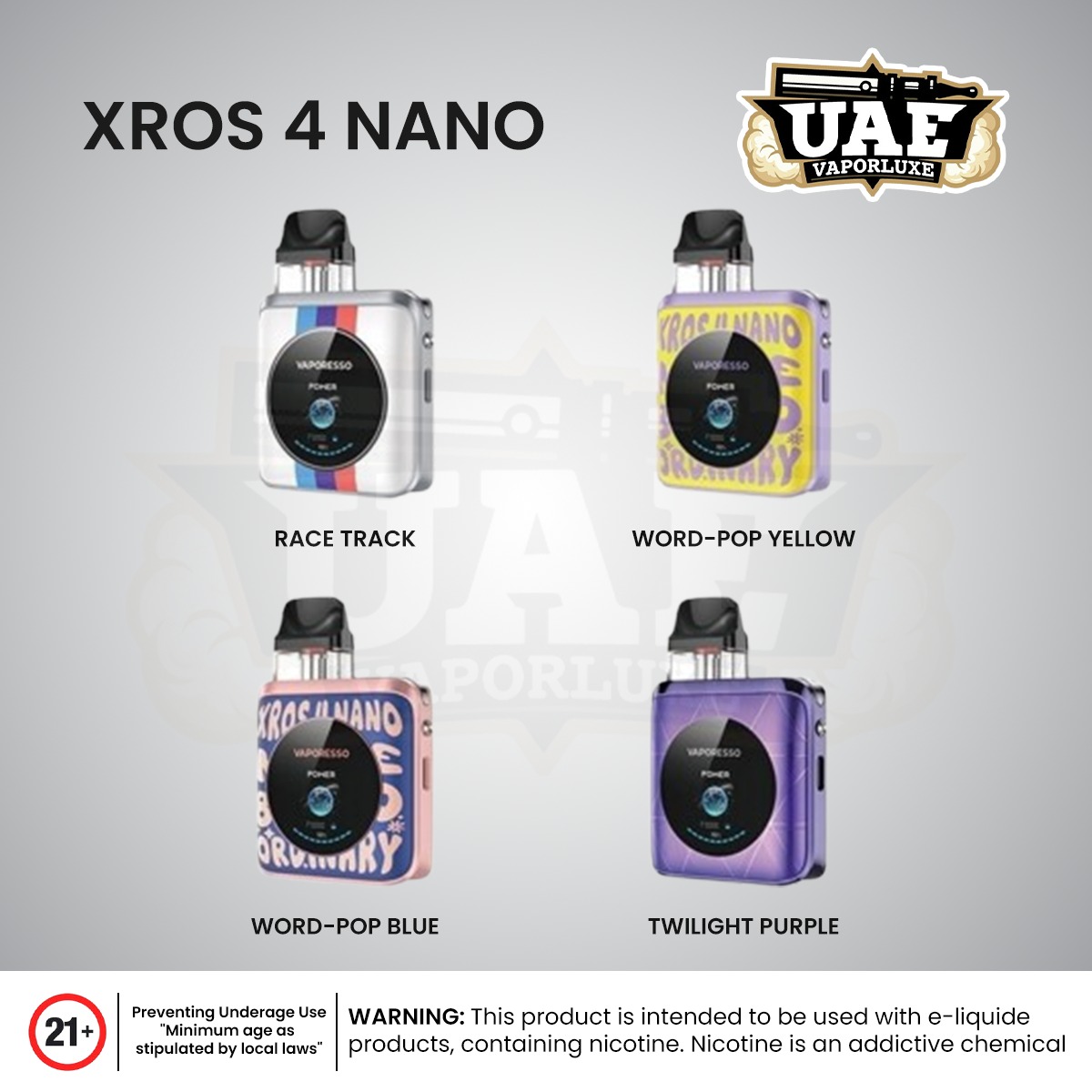 For vapers in Dubai, Sharjah, Ajman, and across the UAE who want a device that combines portability, style, and advanced vaping technology, the Vaporesso XROS 4 Nano Pod Kit delivers an exceptional experience in a compact form. Designed for those who value rich flavor, smooth vapor production, and a hassle-free setup, this pod kit is perfect for both beginners and experienced users.