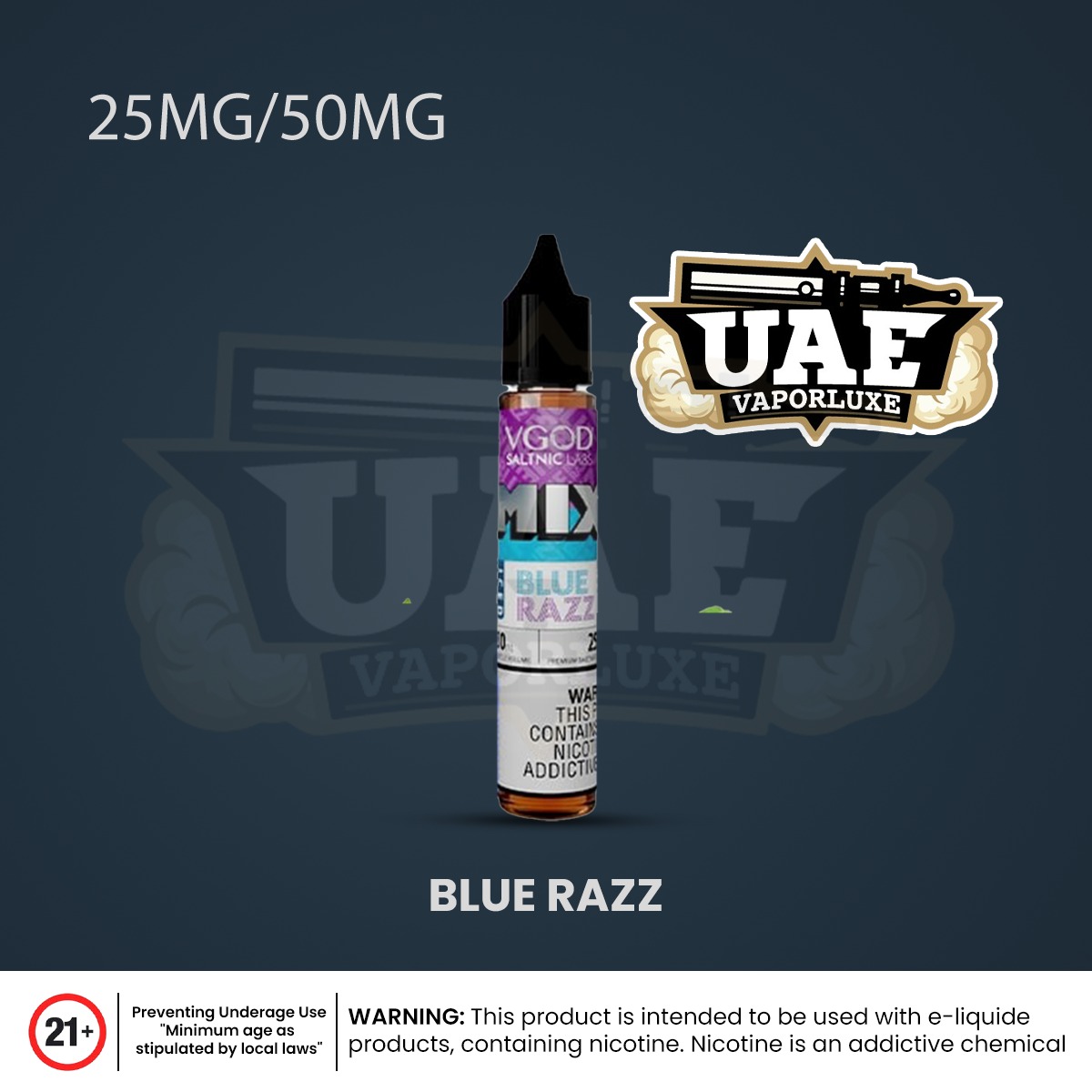 Nicotine Strength: Available in 25mg and 50mg salt nicotine concentrations. (Effective 2.5% or 5% nicotine for strong satisfaction.)